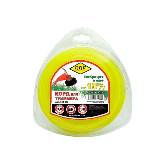 Корд триммерный DDE Classic line 644-818 круг 3,0ммх30м, желтый в блистере