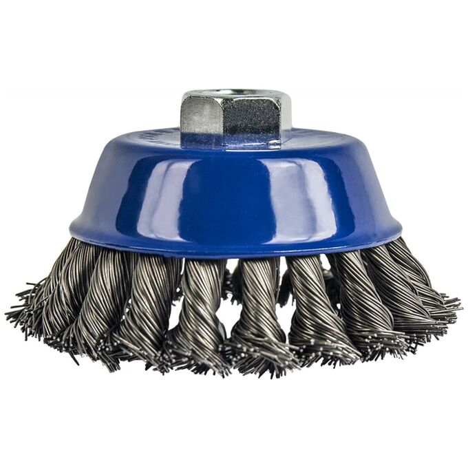 Кордщетки чашеобразные витые. Серия "Мастер". Кордщетка для угловых шлифмашин. Резьбовая посадка на шпиндель. Витая стальная проволока. Для грубой обработки дерева, снятия краски, шлифовки толстого металла, снятия ржавчины, окалины, обработки сварных швов.