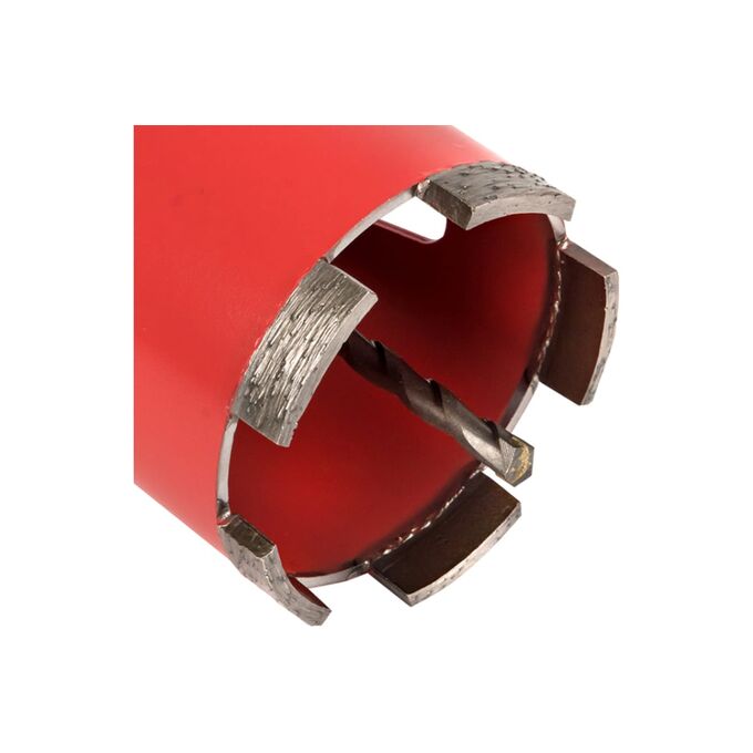 Коронка алмазная служит для сухой резки в бетоне, кирпиче, природном и искусственном камне и плотном известняке с помощью перфоратора с отключенной функцией удара. Имеет 5 режущих сегментов с увеличенным количеством вскрытых промышленных алмазов для высокой скорости реза. Удобная система быстрого снятия центрирующего сверла для увеличения скорости реза и сохранения ресурса инструмента.