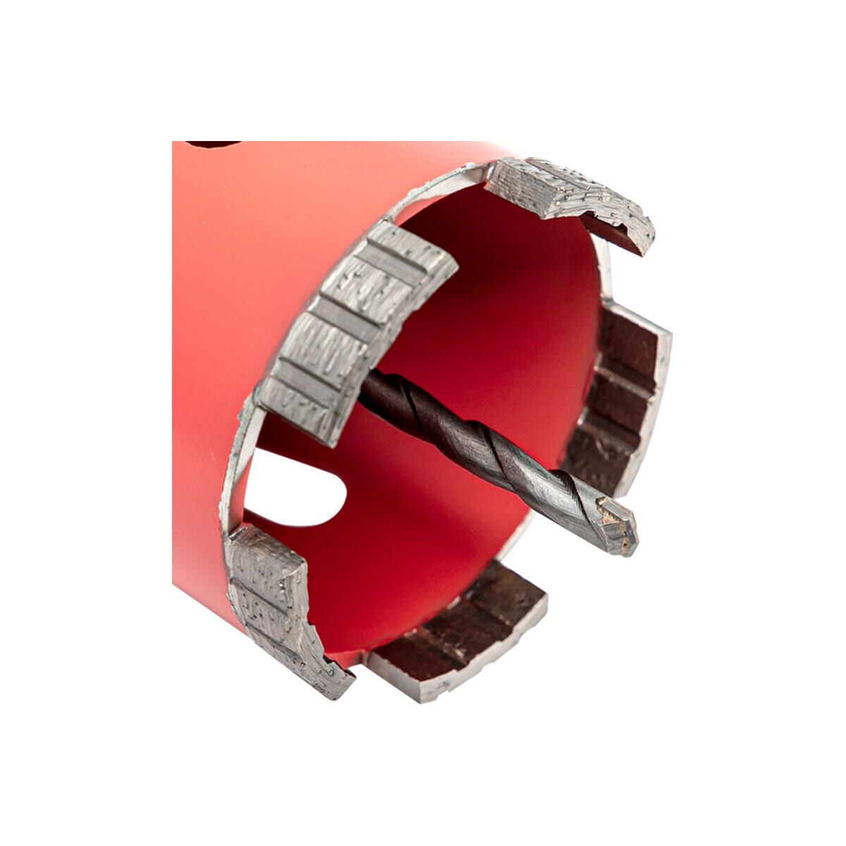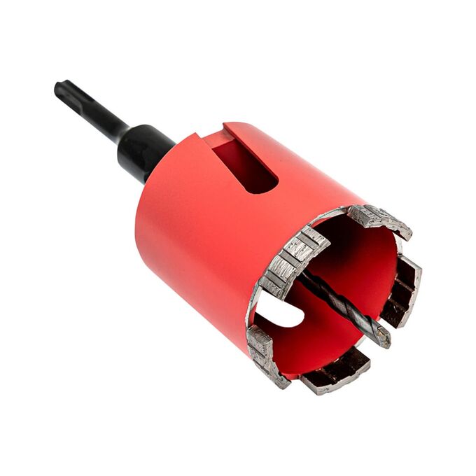 Коронка алмазная применяется для сухой резки в бетоне, кирпиче, природном и искусственном камне и плотном известняке с помощью перфоратора без удара.