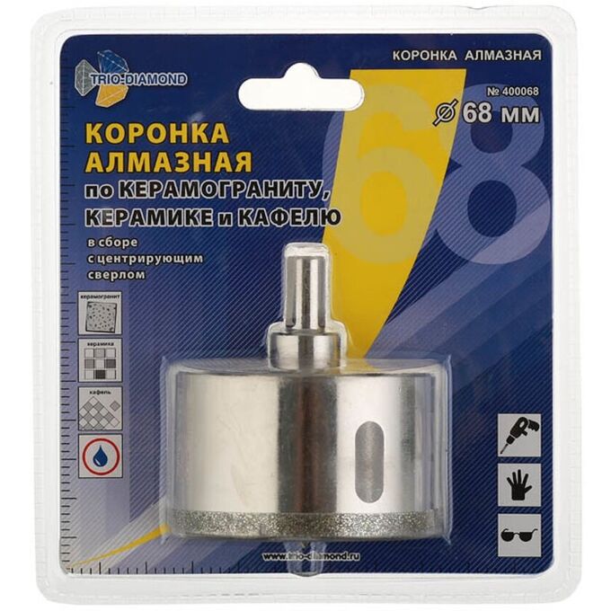 Коронка алмазная по керамике и кафелю с центрирующим сверлом TRIO-DIAMOND 400068 68мм