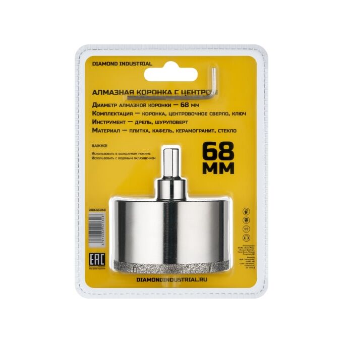 Коронка алмазная по керамограниту с центрирующим сверлом Diamond Industrial DIDCSC068 68мм