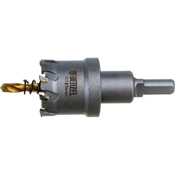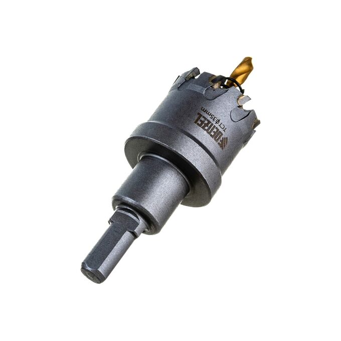 Твердосплавная коронка используется для сверлильных работ по черным, цветным металлам, пластику и другим материалам. Твердосплавные зубья легко выдерживают интенсивные нагрузки, поэтому коронка подходит не только для бытового, но и для профессионального применения. Она позволяет просверлить отверстия большего диаметра в сравнении с обычным сверлом.