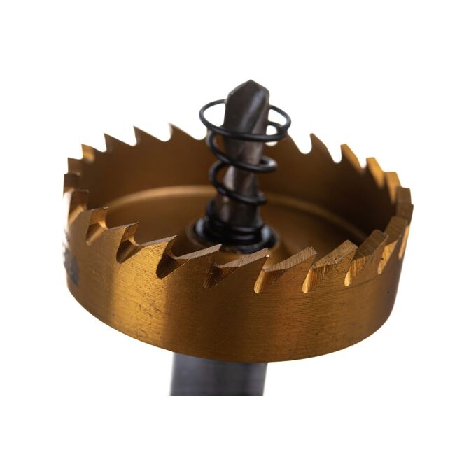 Коронка с нитридтитановым покрытием, 45 мм, применяется для сверления отверстий в черных, цветных металлах, пластике и других материалах. Рассчитана на профессиональное использование на строительных площадках. Коронка пригодится при прокладке коммуникаций, монтаже оборудования, крепежных элементов и различных конструкций.