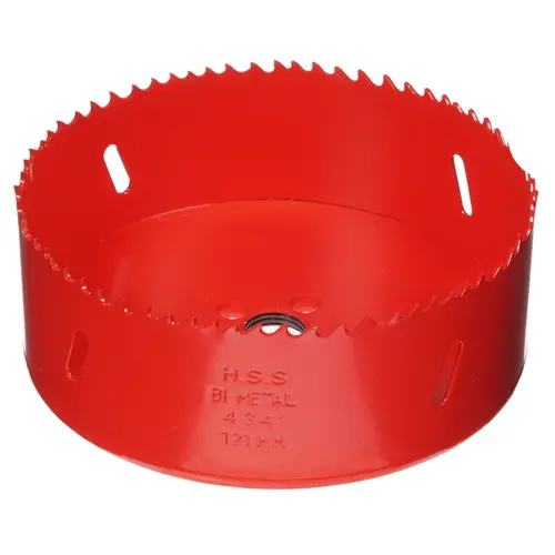 Буровая коронка предназначается для работы с черными и цветными металлами, но также уверенно справляется с просверливанием пластика и менее прочных поверхностей. Изделие крепится к инструменту при помощи хвостовика 5/8” 18UNF, обеспечивая прочную и надежную фиксацию. С помощью такой коронки вы легко просверлите большие технологические отверстия с диаметром 12.1 см.