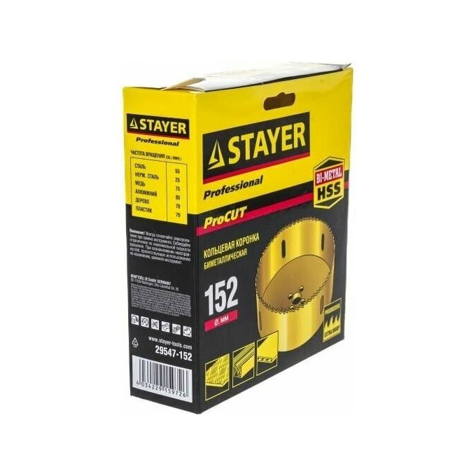 Коронка STAYER Professiona Би-металлическая, универсальная 29547-152 d-152мм