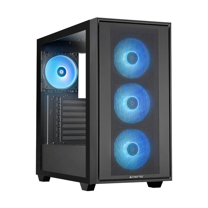 Корпус CHIEFTEC Hunter 3 GS-03B-OP без БП, боковая панель из закаленного стекла, 3xARGB LED 120мм спереди, 1xARGB LED 120мм сзади