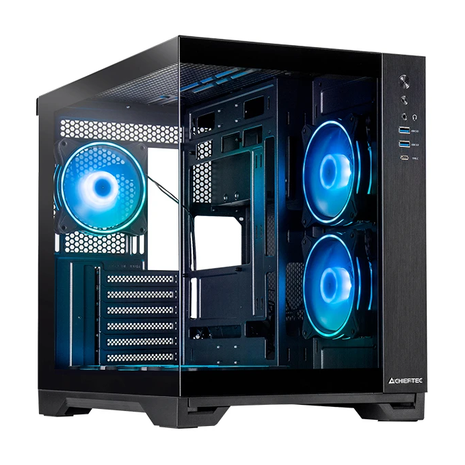 Корпус CHIEFTEC Visio GM-30B-TG-OP без БП, боковая панель из закаленного стекла, 6xPWM ARGB 120мм вентиляторов, черный, ATX