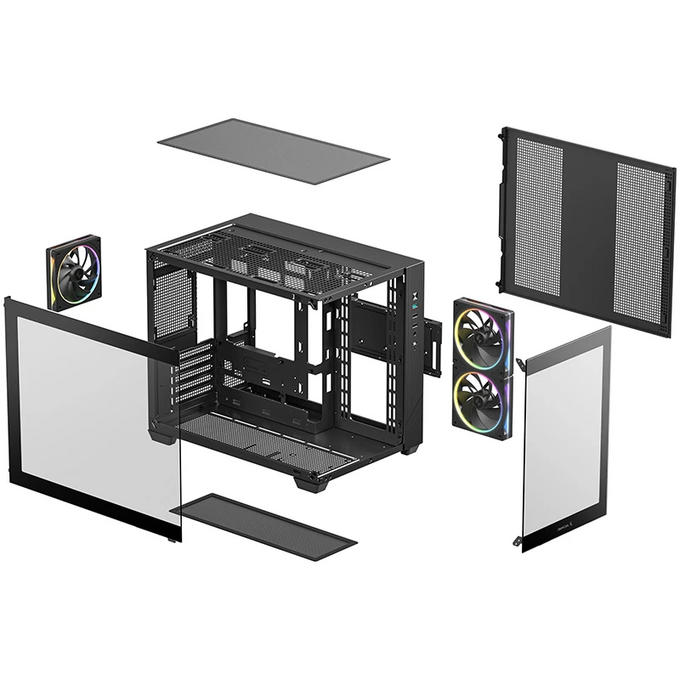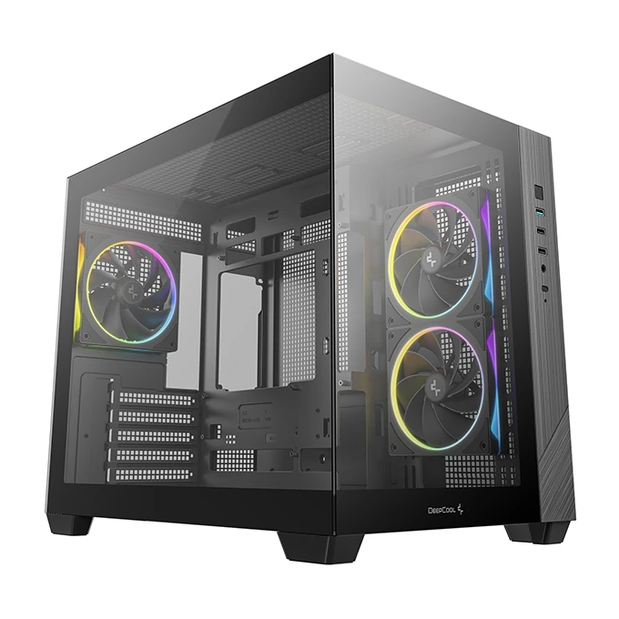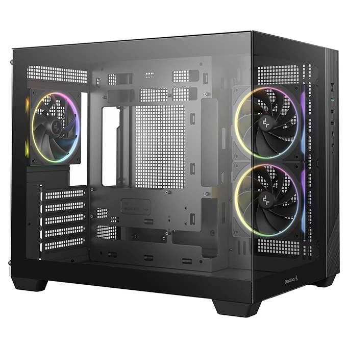 Корпус Deepcool CG330 3F без БП, боковое окно (панорама), 3x120mm ARGB PWM вентилятора, черный, mATX