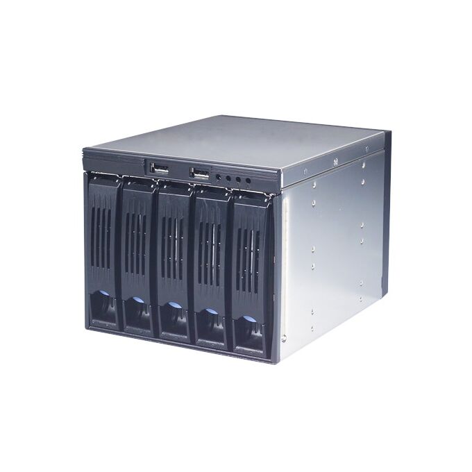 Для установки 5 накопителей в HotSwap лотках в 3 слота 5.25" корпуса. Два порта USB3.0 (внутренне подключение к м/п). Индикаторы включения, перегрева, отказа HDD и отказа вентилятора