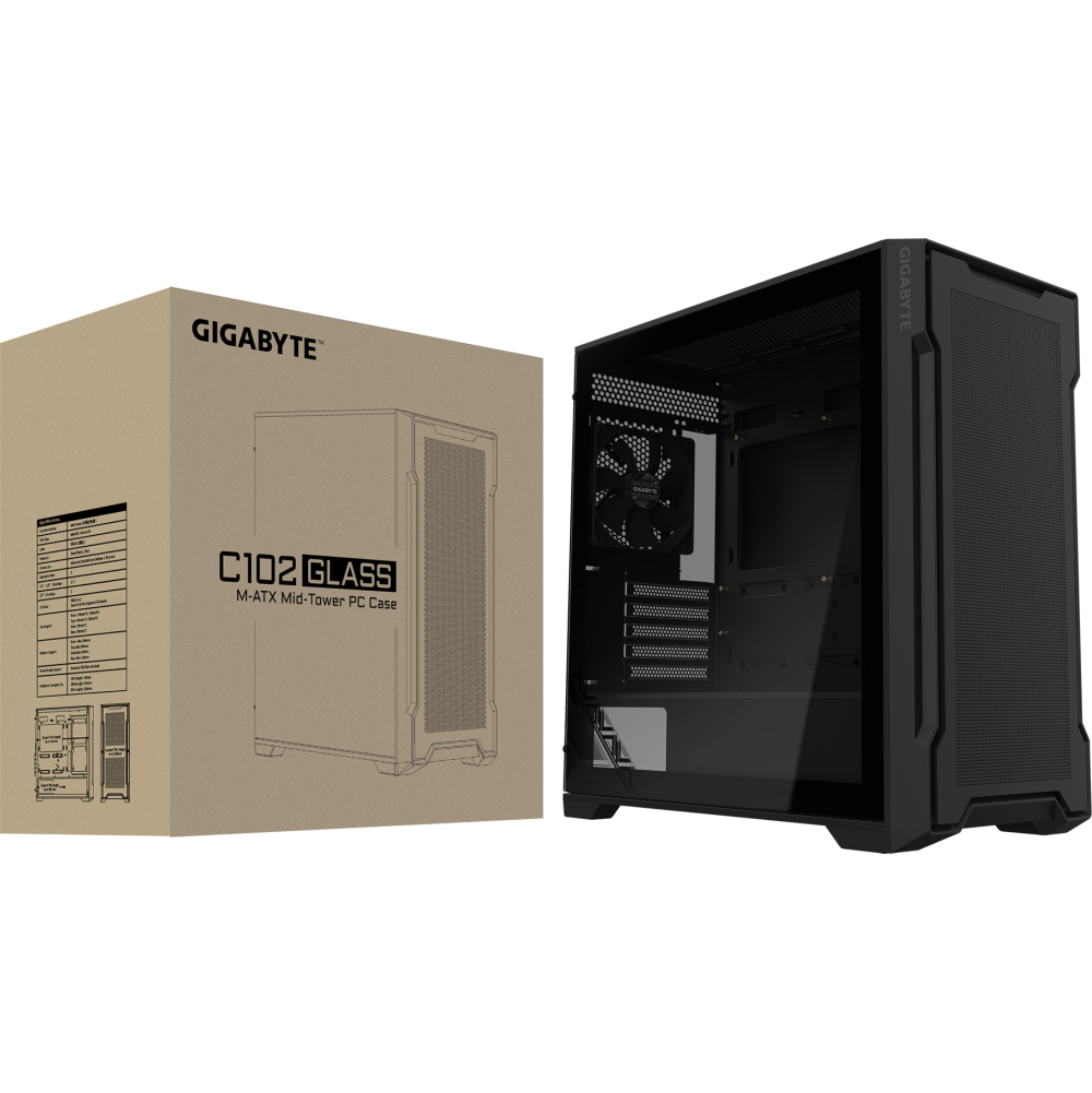 Корпус Gigabyte C102G (GB-C102G) MidTower, mATX, USB3.0x2, Audio I/O, GPU 410mm, Black, TG