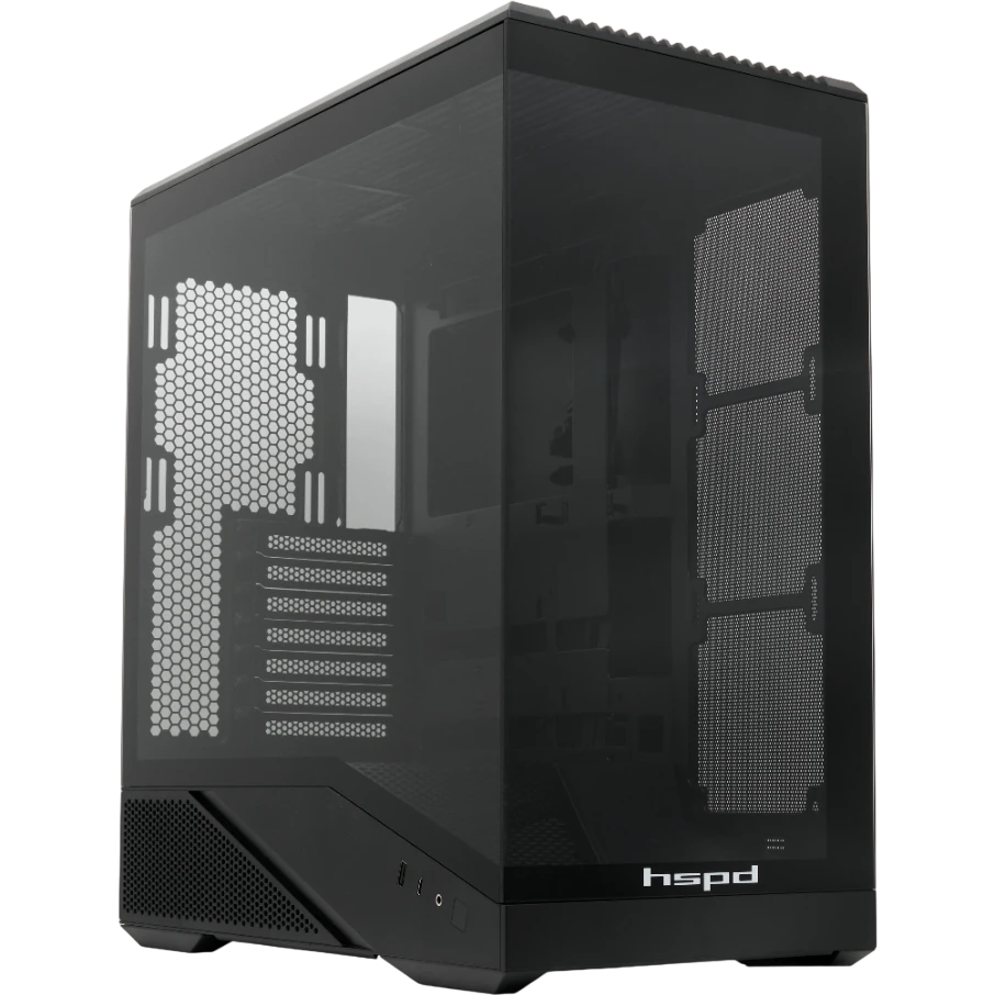 Корпус HSPD F711 (F711-TGBK) без БП, Panoramic Full Tower, Black, TG, 0.7 SPCC, no fans ATX, mITX 190/420/280mm 2x2.5", 7xPCI 1xUSB-A
