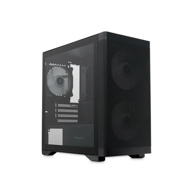 Корпус HSPD M320 (M320-TGBK-ARGB), Mesh Mini-tower, Black, slide TG, 0.45 SPCC, 2x140mm ARGB+1x120mm ARGB mATX