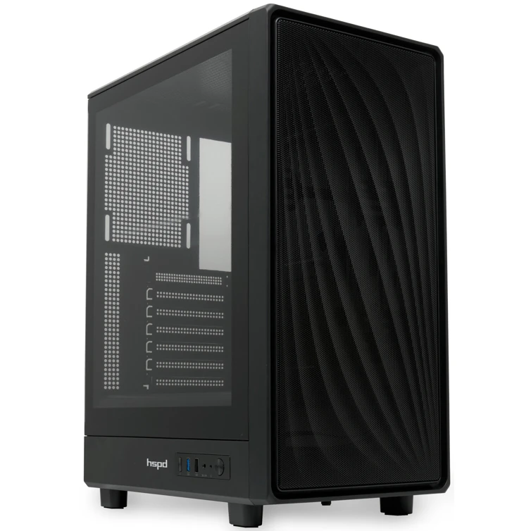 Корпус HSPD M510 (M510-TGBK), без БП, Mesh Mid Tower, Black, TG, 0.5 SPCC, no fans ATX, mITX 180/280/160mm 1x2.5", 7xPCI 1xUSB-A 3.0, 1.0 517x