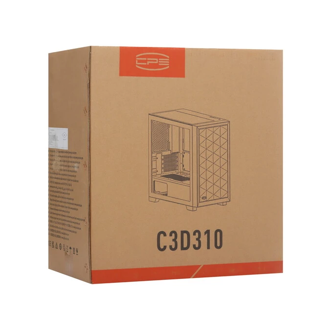 Корпус PcCooler C3D310 BK, без БП, Mesh Mid Tower, Black, TG, 0.6 SPCC, no fans mATX, mITX 165/350/200mm 3x2.5", 2x3.5", 4xPCI 2xUSB-A 3