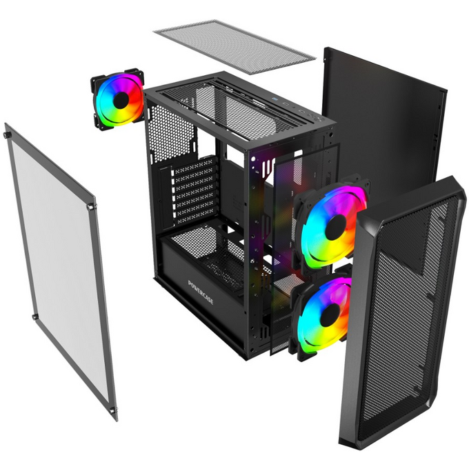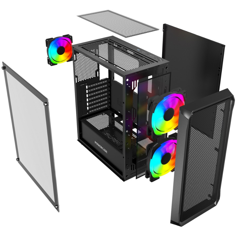 Корпус Powercase Mistral Edge SE, Tempered Glass, 2x 140mm ARGB PWM+1х 120mm ARGB PWM, чёрный, ATX (CMSEB-A3)