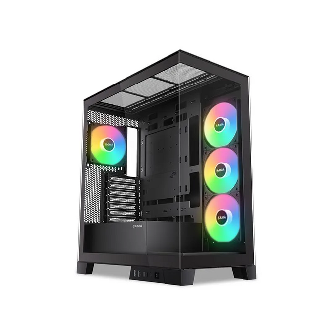 Корпус SAMA V50 Black (V50-BKADA4X1-GL) без БП, Midi-Tower, TG, 4x120mm ARGB, 2xUSB 3.0 + 1xUSB 3.1 Type-C, ATX, mITX