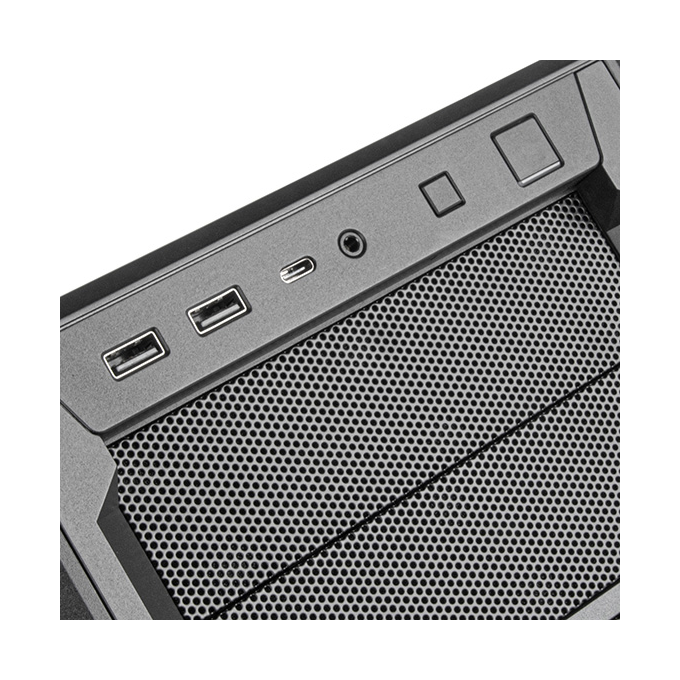 Разъемы на лицевой панели:2x USB 3.0, 3.5 мм комбинированный наушники/микрофон, кнопка Reset, кнопка Power (вкл/выкл), 1x USB Type C