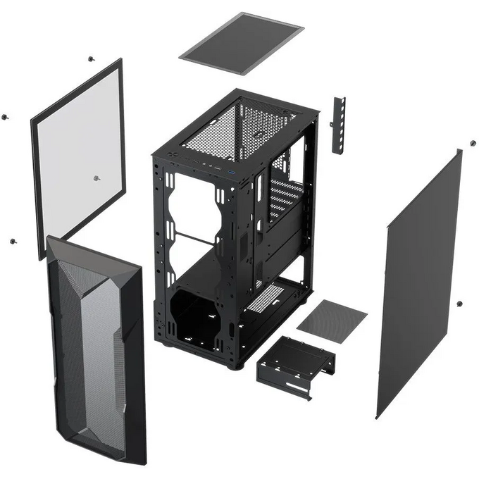 Корпус XASTRA A304 4ARGB-C6 Black (A304-4FC12A-C6) ATX/Mesh/half-size TG/4x120mm ARGB FC fans/Argb+PWM HUB 6port
