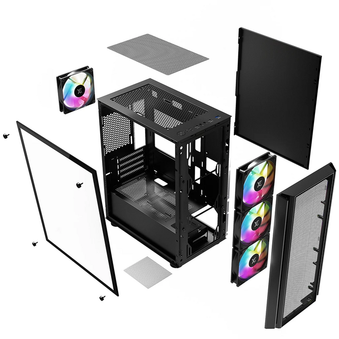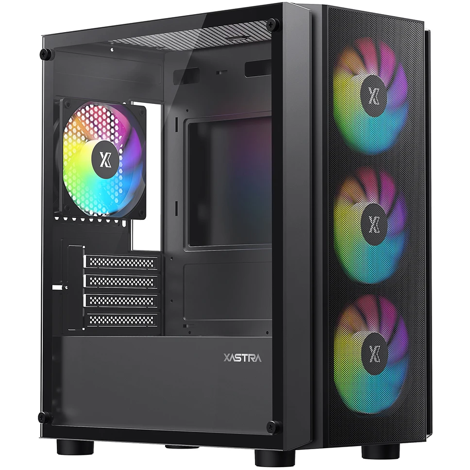 Корпус XASTRA A402M 4ARGB-C6 Black (A402M-4FC12A-BK-C6) mATX/Mesh/full-size TG/ 4x120mm ARGB PWM fans/Argb+PWM HUB 6port