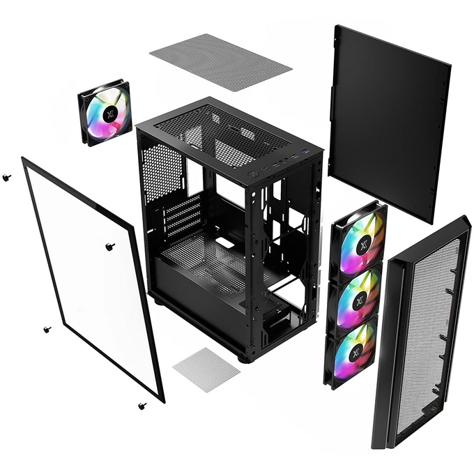 Корпус XASTRA A402M 4FRGB Black (A402M-4FC12F-BK) mATX/Mesh/full-size TG/4x120mm FRGB fans