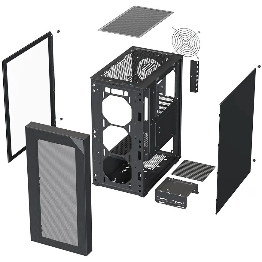 Корпус XASTRA A408 4ARGB Black (A408-4FG12A) ATX/Mesh/Screwless full-size TG / 4x120mm ARGB PWM FG fans