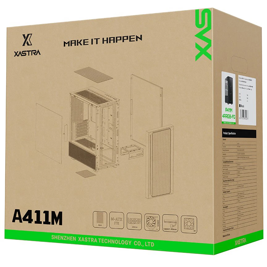 Корпус XASTRA A411M 4ARGB-FC Black (A411M-4FC12A) mATX/Mesh /ScrewlessTG+mesh panel/ 4x120mm ARGB PWM FC fans