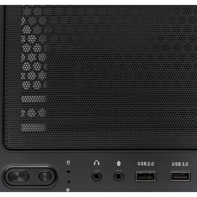 Разъемы на лицевой панели:1x USB 3.0, разъем для наушников, разъем для микрофона, кнопка Reset, кнопка Power, 1хUSB 2.0