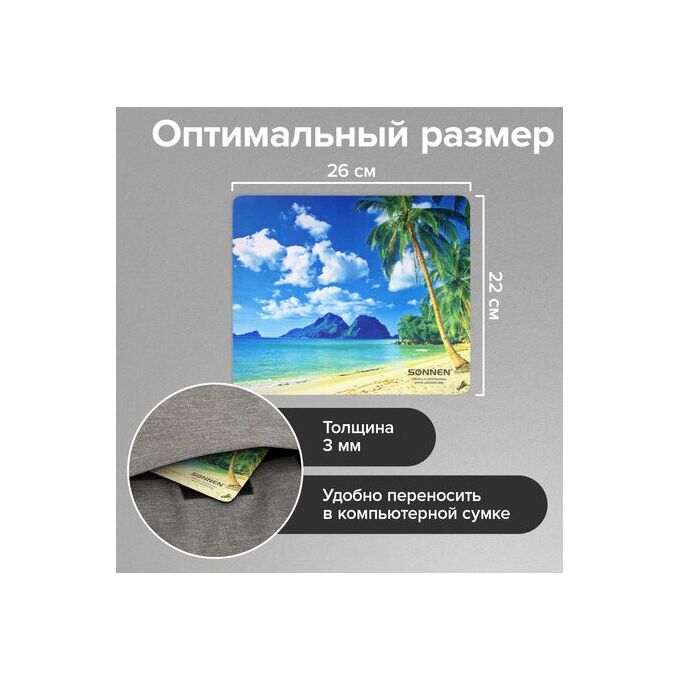 Коврик для мыши Sonnen 513294 BEACH, резина + ткань, 260х220х3мм