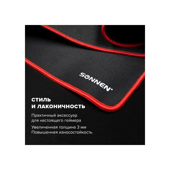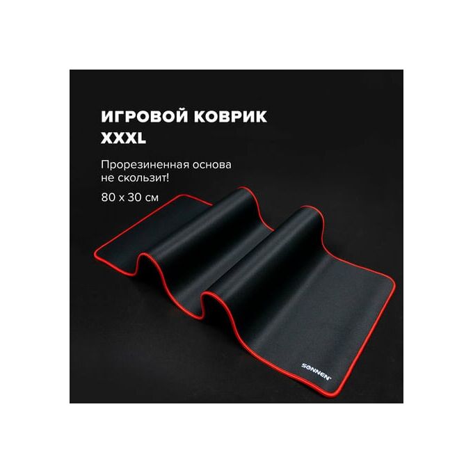 Игровой коврик для мыши SONNEN "BLACK TITAN" подходит для оптических и лазерных мышей с любой чувствительностью и любым типом сенсора, также обладает устойчивым сцеплением с поверхностью стола.