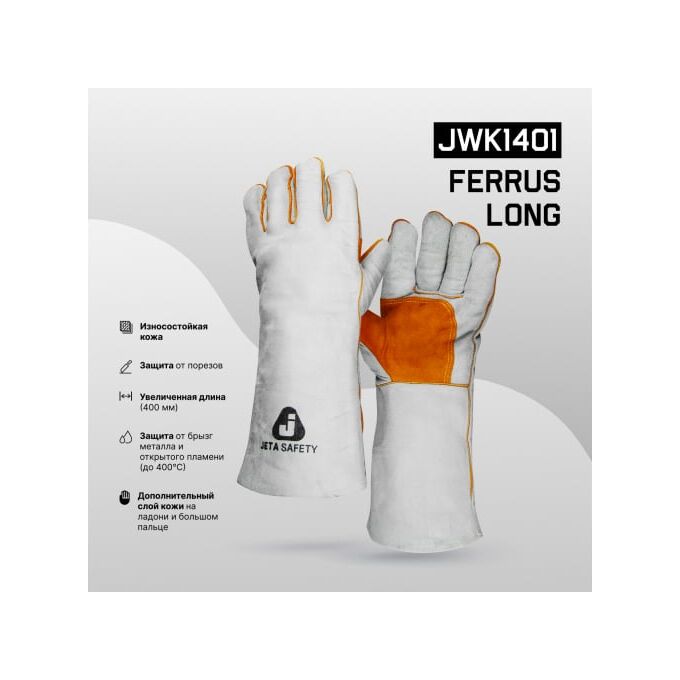Технические характеристики удлиненных краг сварщика Jeta Safety с подкладкой 40 см JWK1401-XL