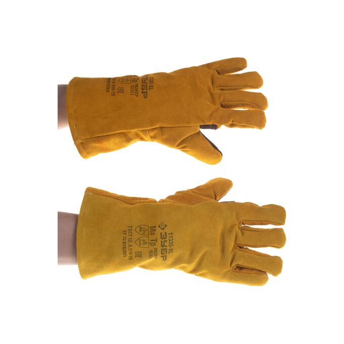 Технические характеристики термостойких краг для сварки и тяжелых механических работ ЗУБР утепленные, спилковые, 350 мм 11335-XL