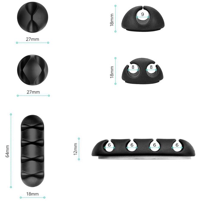 Самоклеющиеся держатели для проводов помогут аккуратно и быстро избавиться от беспорядка на вашем рабочем столе. Клипсы подходят для многофункционального применения. Их можно использовать не только в качестве держателя для проводов, но и для любого другого кабеля толщиной до 0,5 см.