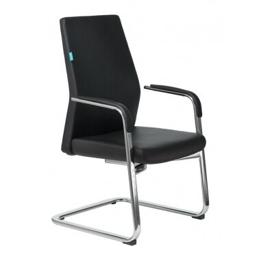 Кресло Бюрократ _JONS-LOW-V/Black на полозьях черный кожа