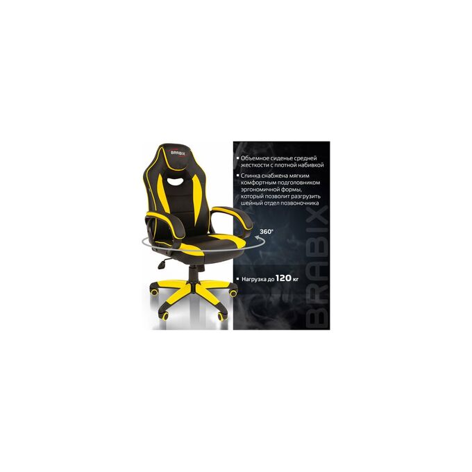 Кресло игровое BRABIX Blaze GM-162 (532579) TW/экокожа, черное/желтое