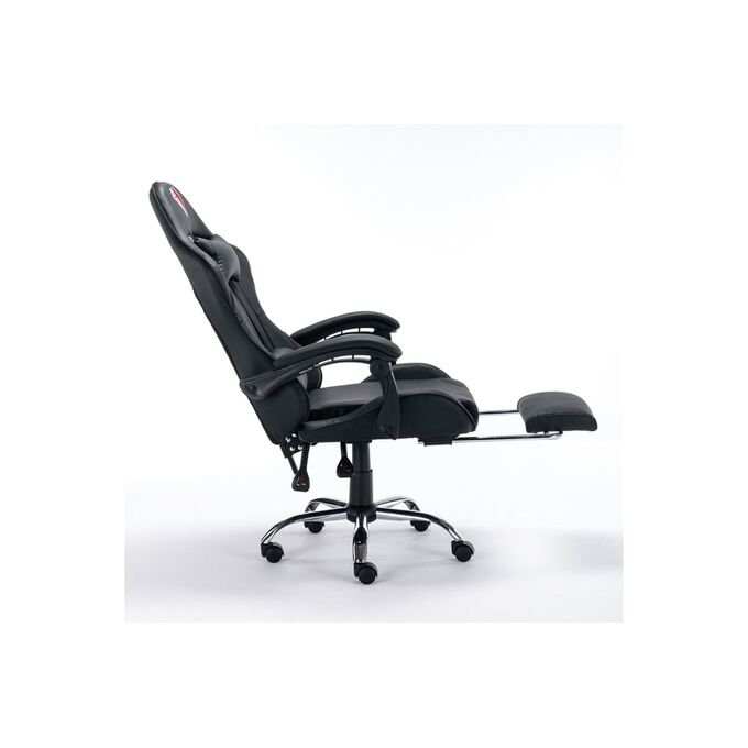 Широкие пластиковые подлокотники с мягкими накладками позволят с удобством разместиться в кресле, а чтобы полностью расслабиться, достаточно откинуть подставку для ног и принять удобное положение.