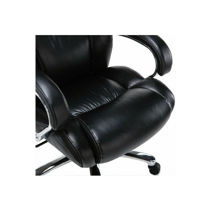 Прочное, просторное и удобное кресло с расширенной гарантией на 24 месяца. Обивка кресла выполнена из рециклированной кожи - современного материала, созданного из измельченных частиц натуральной кожи. По эластичности и прочности рециклированная кожа максимально близка к натуральной. Материал хорошо пропускает воздух, что положительным образом сказывается на комфорте во время эксплуатации. Материал износоустойчив, кресло способно сохранять привлекательный внешний вид длительное время.