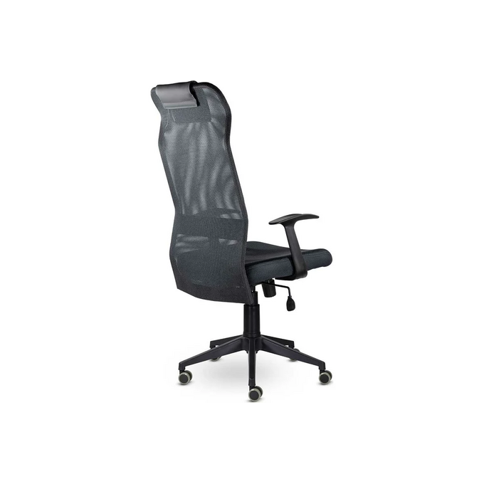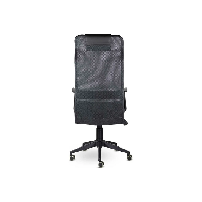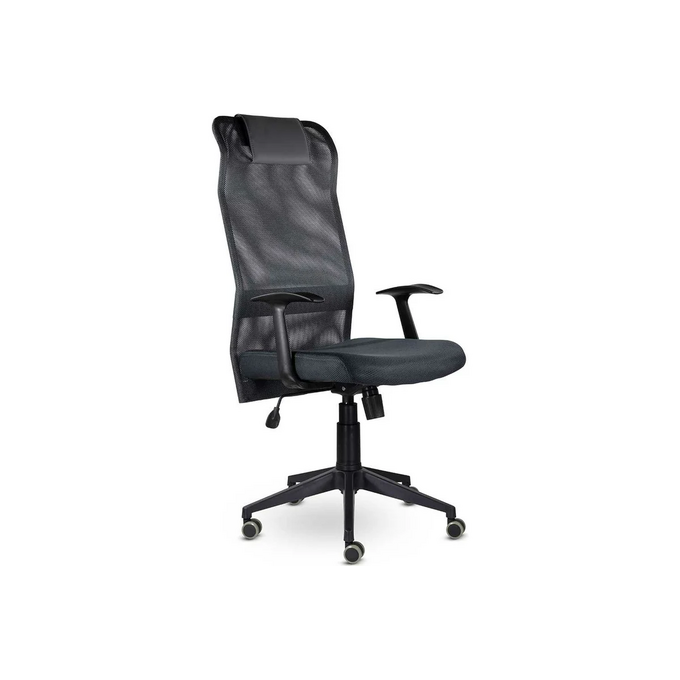 Модель имеет высокую спинку с подголовником из экокожи и мягкое сиденье.