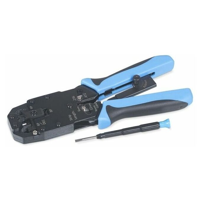 Кримпер Hyperline HT-2008AR для RJ-45, RJ-12, RJ-11 (8P8C, 6P6C, 4P4C), профессиональный, с храповым механизмом
