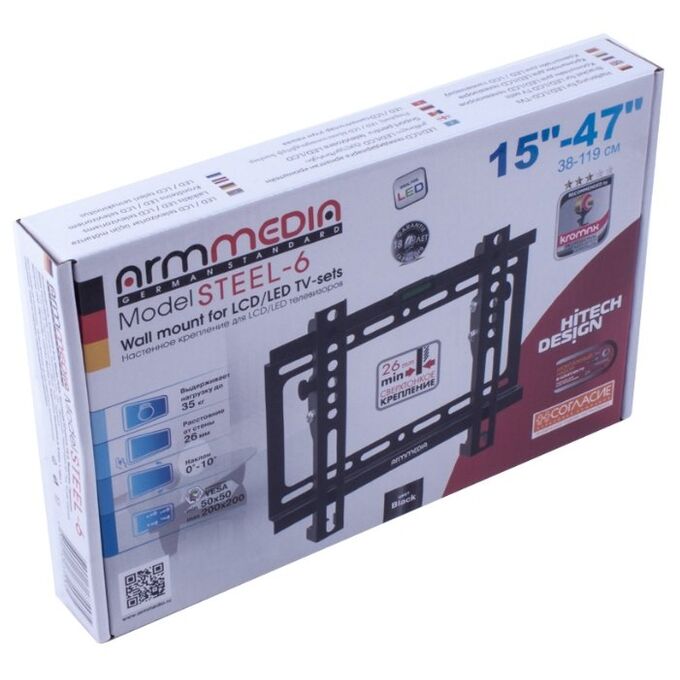 15"-47" Кронштейн Arm Media STEEL-6 черный макс.40кг настенный наклон