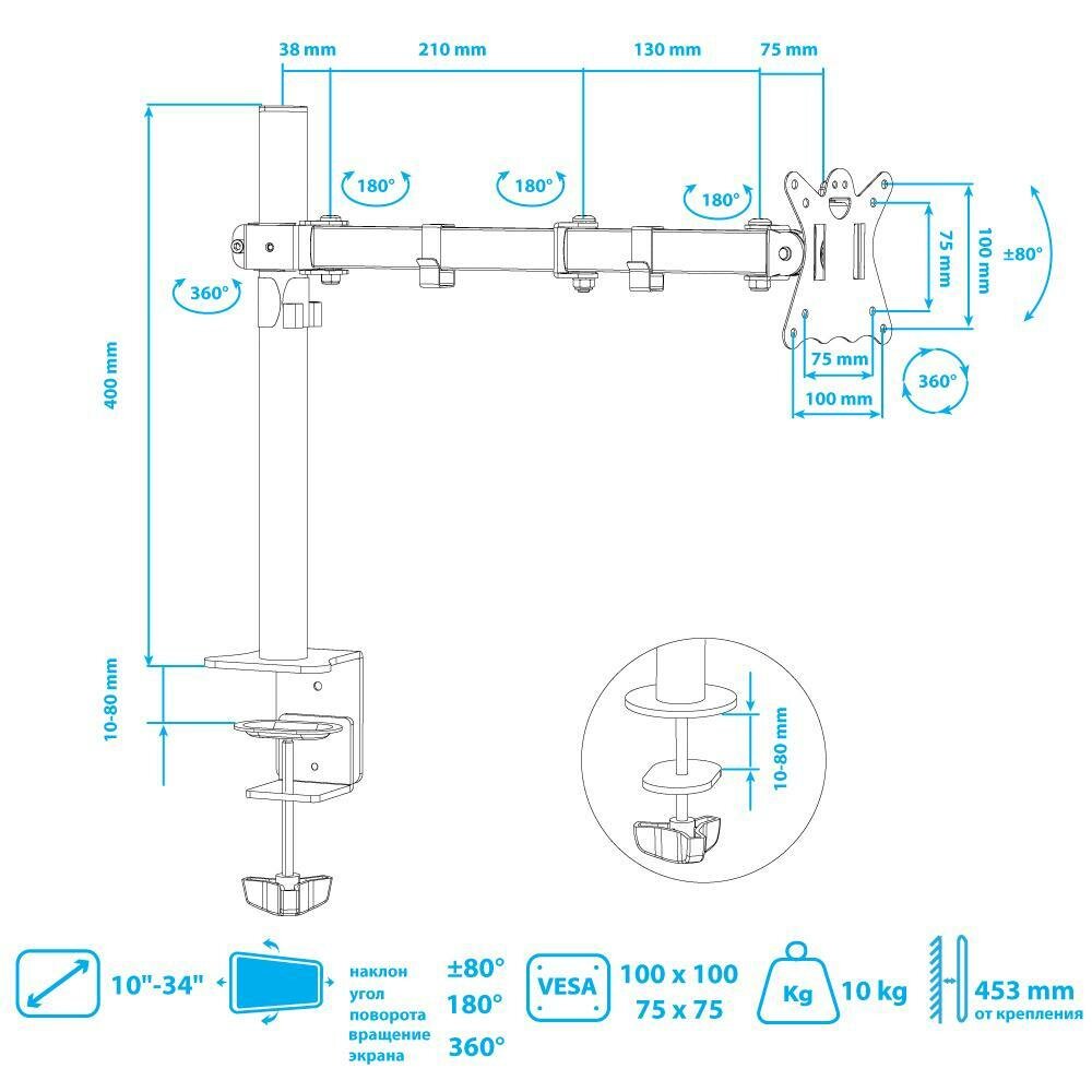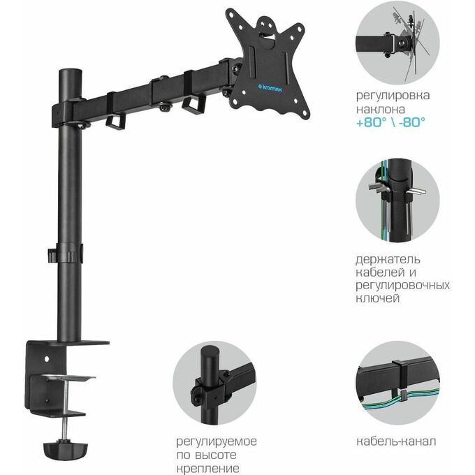 Кронштейн для мониторов Kromax CASPER-507 черный 10"-34" макс.10кг настольный поворот и наклон