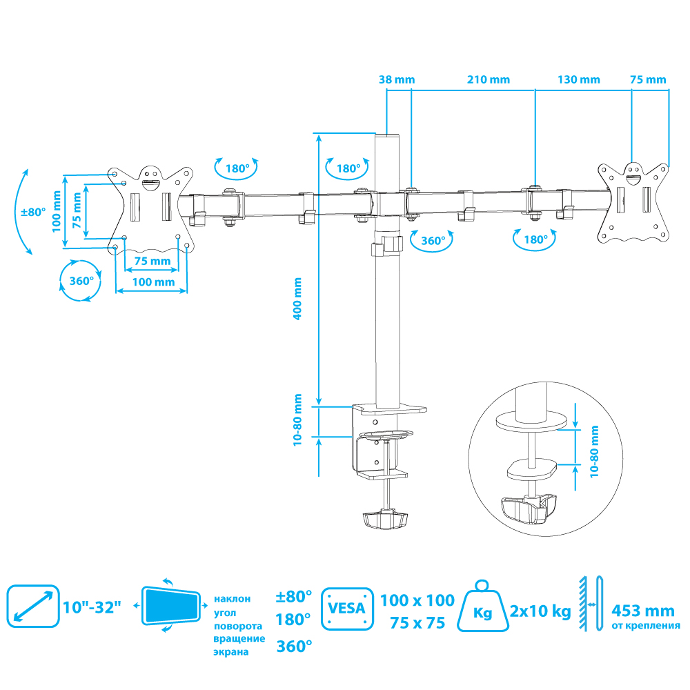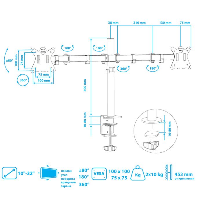 Настольный кронштейн для монитора, комплект крепежа для установки ТВ, подробная инструкция на русском языке