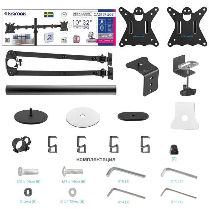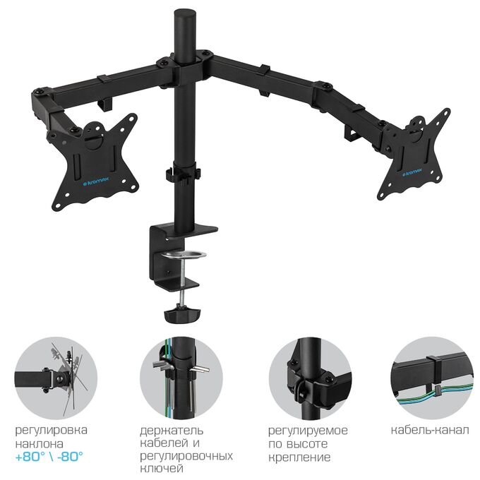 Кронштейн для мониторов Kromax Casper-508 черный 10"-32" макс.10кг настольный поворот и наклон