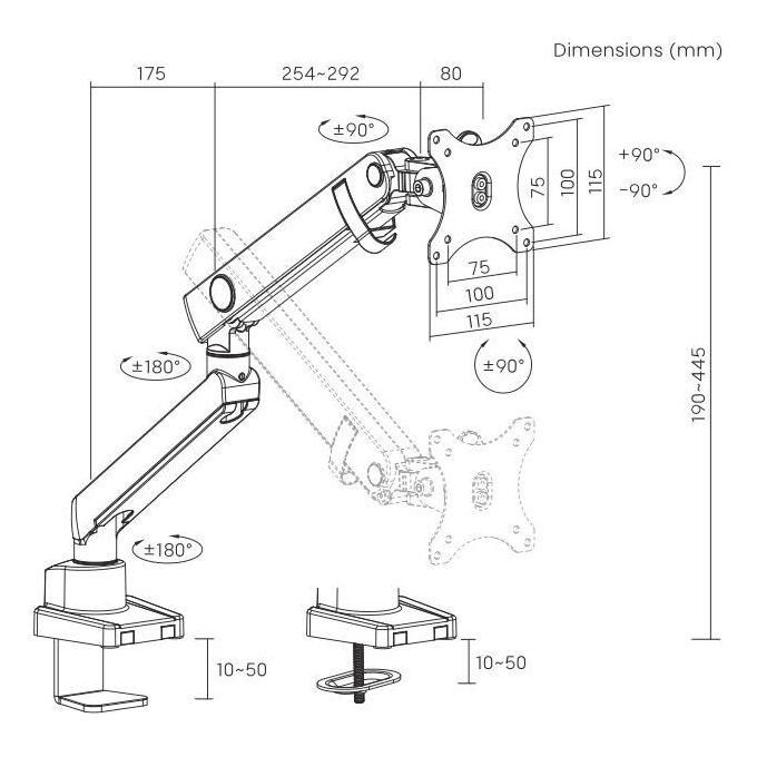 Особенности: Настольный кронштейн для монитора с системой газ-лифт.