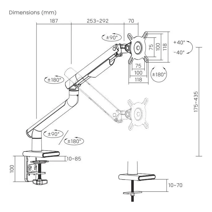 Настольный кронштейн для монитора с системой газ-лифт. Встроенная система организации кабелей поможет для организованного и аккуратного рабочего пространства.