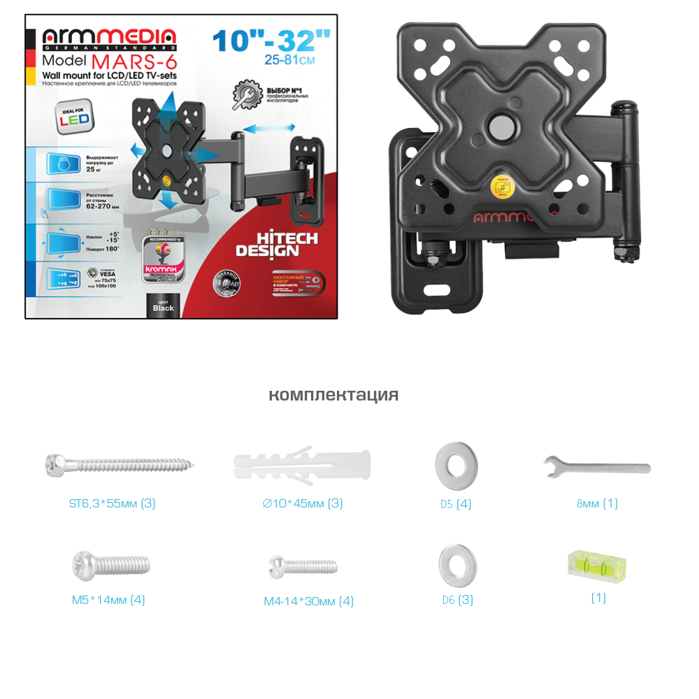 Кронштейн для телевизора Arm Media Mars-6 черный
