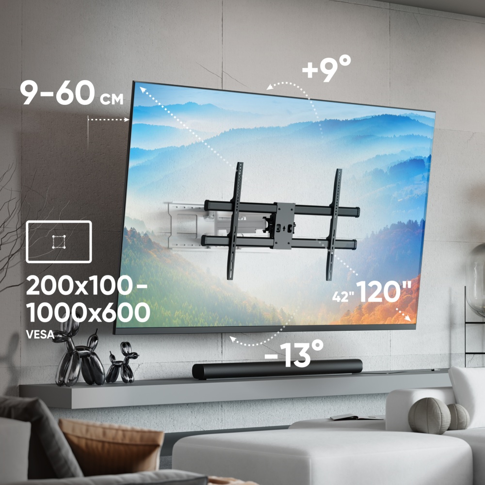 Кронштейн ONKRON M10-BW чёрно-белый Для экранов с диагональю 42"-120" наклонно-поворотный, макс. нагрузка 100кг