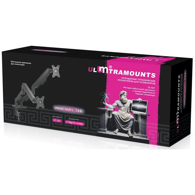 Кронштейн для мониторов Ultramounts UM740 черный 17"-32" макс.9кг крепление к столешнице поворот и наклон