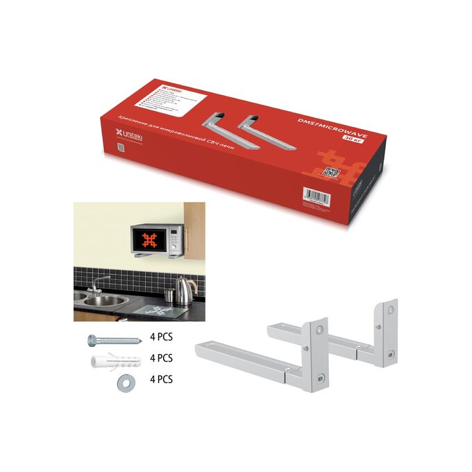 Кронштейн UNITEKI DMS7MICROWAVE предназначен для настенного монтажа СВЧ, ресивера, полок, принтера, столика весом не более 30 кг. Обладает универсальной конструкцией - это позволяет закреплять большинство моделей современных микроволновых печей. Широкая область применения данного складного-телескопического товара, позволяет использовать конструкцию для монтажа на нем ресивера, принтера, столика, полок подходящего размера, различной длинны и ширины, что позволить разместить данное крепление в таких помещениях, как гараж, балкон, лоджия, хозяйственное помещение, беседка и т.д. Полка не требует особых навыков по установке.
