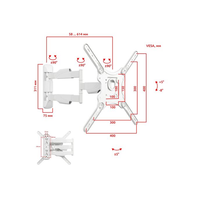 Для поворота телевизора вам не нужно использовать дополнительных приспособлений или прилагать усилия. Вы сможете повернуть ТВ и изменить расстояние от стены лёгким движением руки, при этом телевизор зафиксируется в настроенном положении. Эта функция придется, кстати, как для небольших помещений, так и для большого пространства. Также кронштейн является одним из самых маневренных в своей категории. Крепкий и прочный, при этом элегантный кронштейн станет стильным дополнением домашнего интерьера. Поставляется с инструкциями и всем необходимым оборудованием, удобная сборка и установка не требует особых навыков.